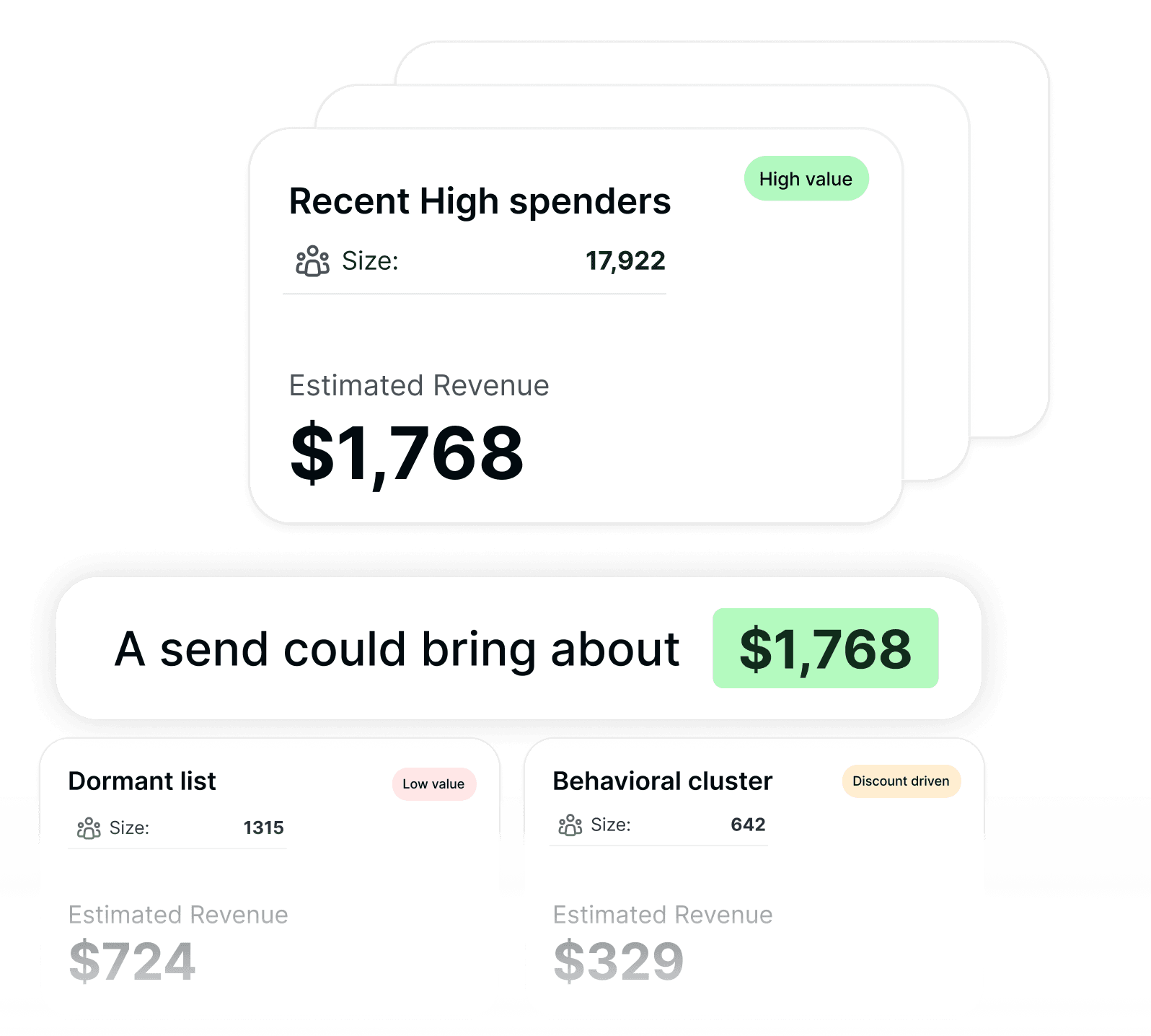 Each audience includes estimated revenue potentional to help prioritize what’s woth sending next